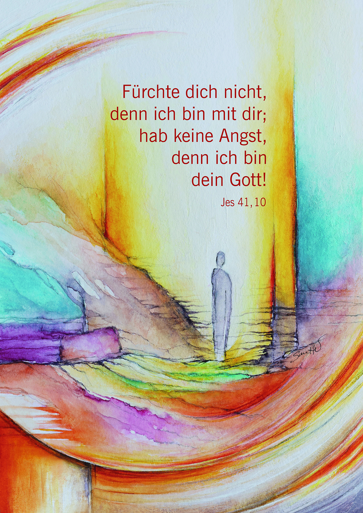 Andrea Sautter malt ihre Interpretation der Jahreslosung in diesem Jahr in Aquarelltechnik und schafft es auf beeindruckende Weise, die besondere Ausstrahlung dieser Technik auf die gedruckten Karten und Poster zu bringen. Dies gibt Ihren Jahreslosungs-Artikeln eine besondere Tiefe.