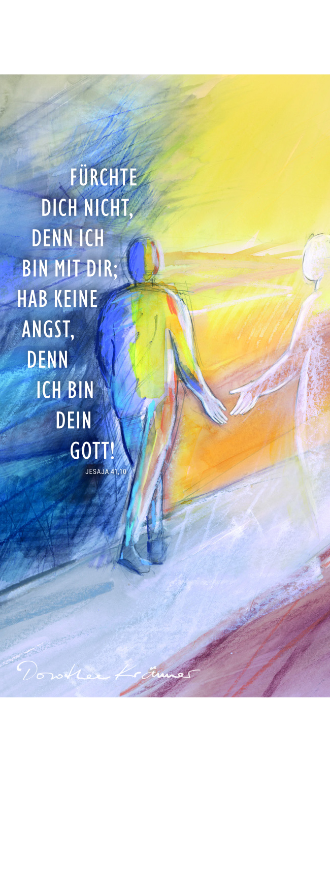 In ihrer unverwechselbaren Art hat Dorothee Krämer die Jahreslosung 2027 gestaltet. Ihre eindrucksvollen Motive erfreuen sich seit Jahren großer Beliebtheit.